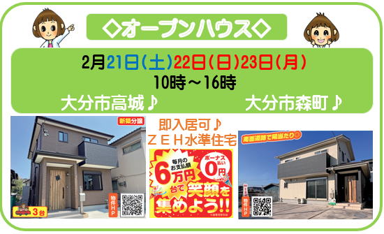 オープンハウスはご来場いただきまして ありがとうございました! 再度内覧されたい方や日程が合わず ご来場いただけなかった方は いつでもご案内できますので お気軽にご連絡ください♪ TEL 0977-25-8100 メールこちら